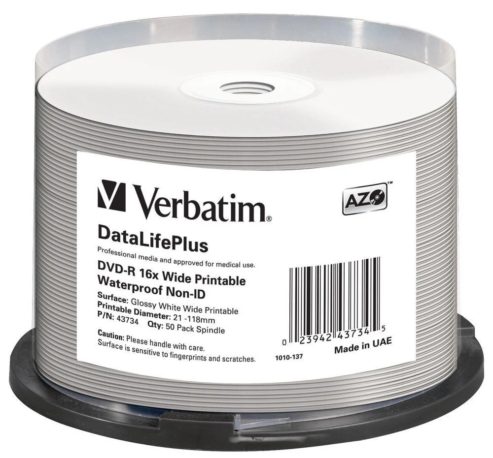 VERBATIM DVD-R 16X FULL NYOMTATHATÓ FÉNYES VÍZÁLLÓ NO ID CAKE (50) - Dvdlemezbolt.shop - Írható CD-DVD-Blu Ray lemez memóriakártya pendrive és külső merevlemez rendelés.